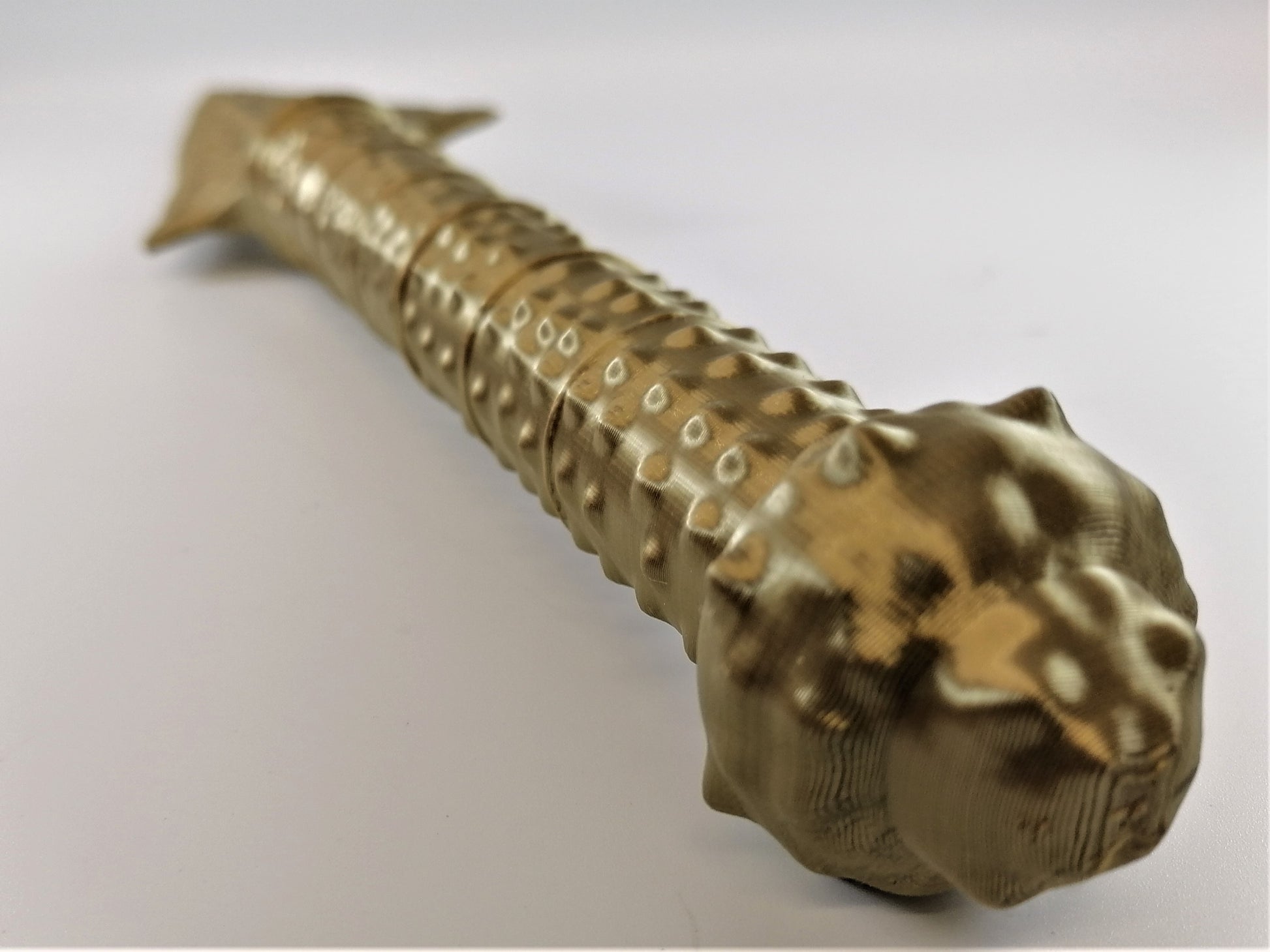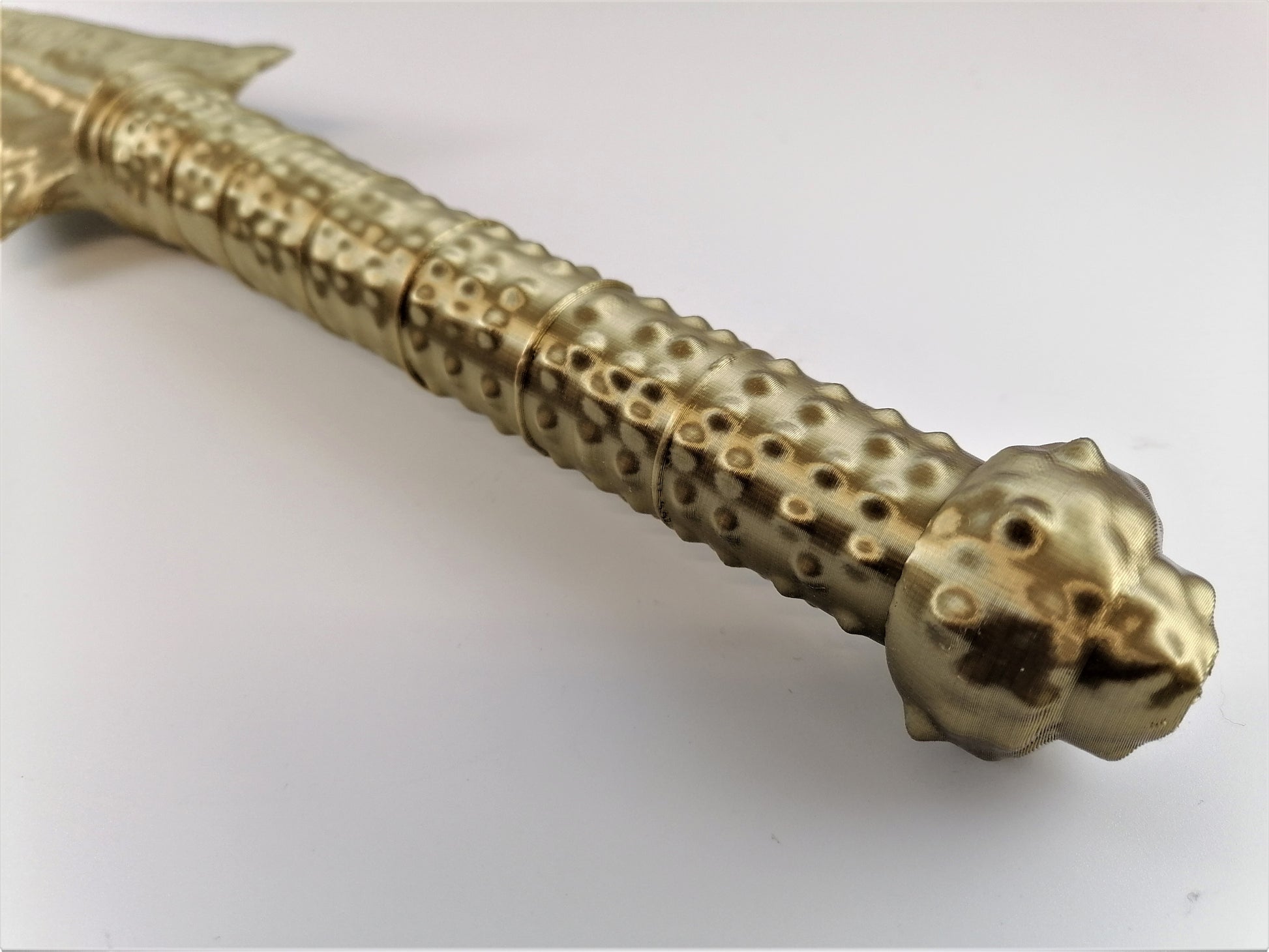 Our 3D printed items may have visible print lines and small imperfections. Occasional inconsistencies are a normal occurrence for this type of manufacturing. However, our props are designed to be customised so light sanding and painting will remove these lines and imperfections.
